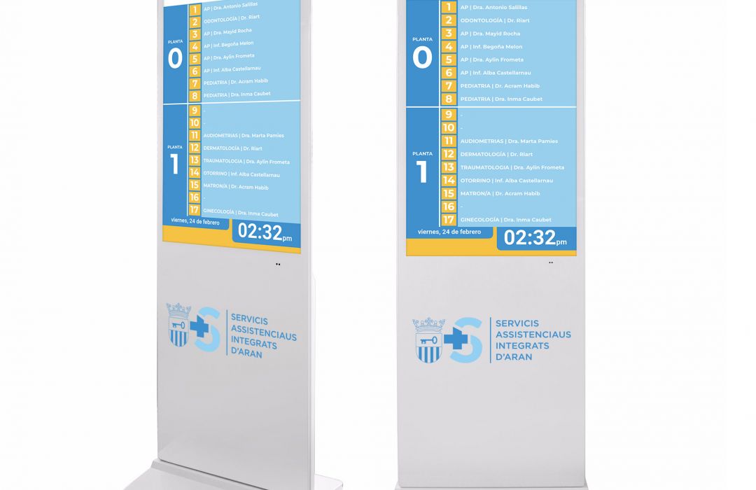KAY PRODUCCIONS ha instalado dos directorios multimedia modelo BASIC STAND 55” en la nueva planta de atención al usuario del Hospital de Viella...